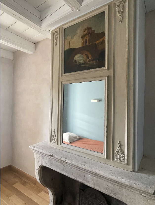 Chambre du cocher, lit 90×200, détail trumeau – Château de Ville au Val